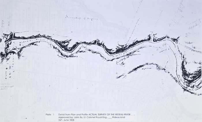 - 1828: ACTUAL SURVEY OF THE RIDEAU RIVER and part of the Ottawa. Approved by: John By, Lt. Colonel Royal Eng., ____ Rideauland. 26th. June 1828. Scale: 400 feet to an inch.