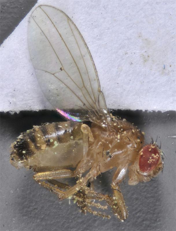 Drosophila melanogaster: This fruit fly, originally from equatorial Africa but now spread world wide,