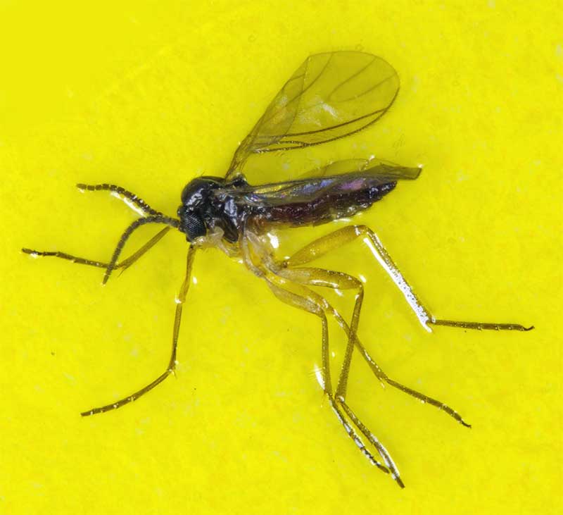 Sciaridae: Dark-winged Fungus Gnat larvae are common in damp organic soil where they eat