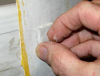 sharp steel corner (I use a cabinet scraper) held at 45°, then measure the edge
