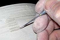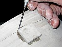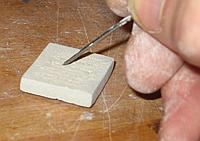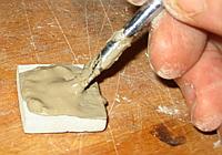 into the glaze for two seconds, remove and let dry. Scratch through the layer with a