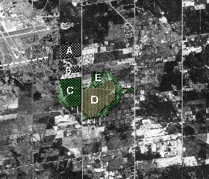 The RMOC Council's reaction was that the new information on the site was just last-minute obstructionism. They approved the zoning change in full, overruling their own planning department staff and even overriding further public notice requirements in the process. The happy land owners promptly dug a drainage ditch right through the middle of the most sensitive part of the wetland, the fen (as shown in the aerial view above). Politically, the RMOC, and it's successor, the amalgamated City of Ottawa, have continued active support of the developers ever since, with plans to provide servicing sufficient to cover the whole area with housing, and to wipe out the southern section of the wetland with a road.