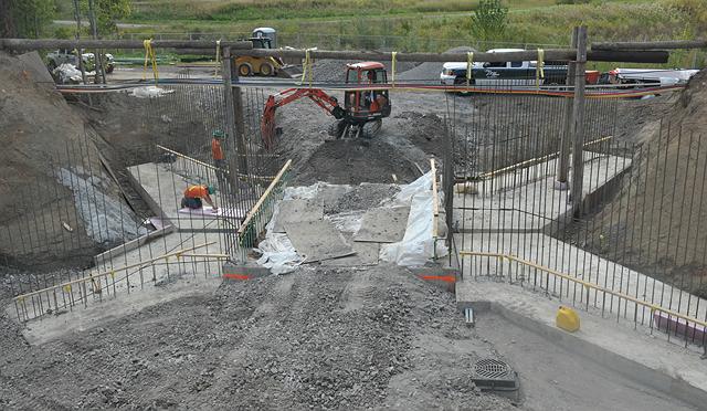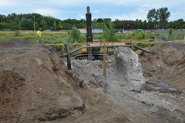 demolishing the old railway underpass, built in 1871 for a branch of the Sawmill Creek