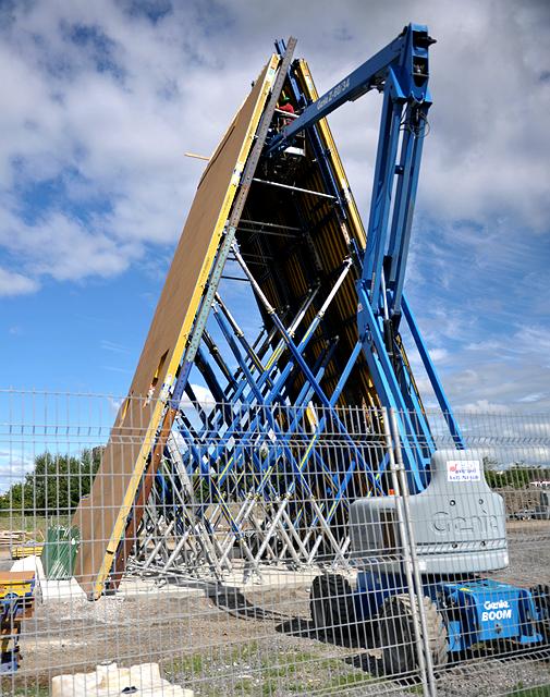 beginning the formwork and falsework for the bridge tower - the pathway will thread between two