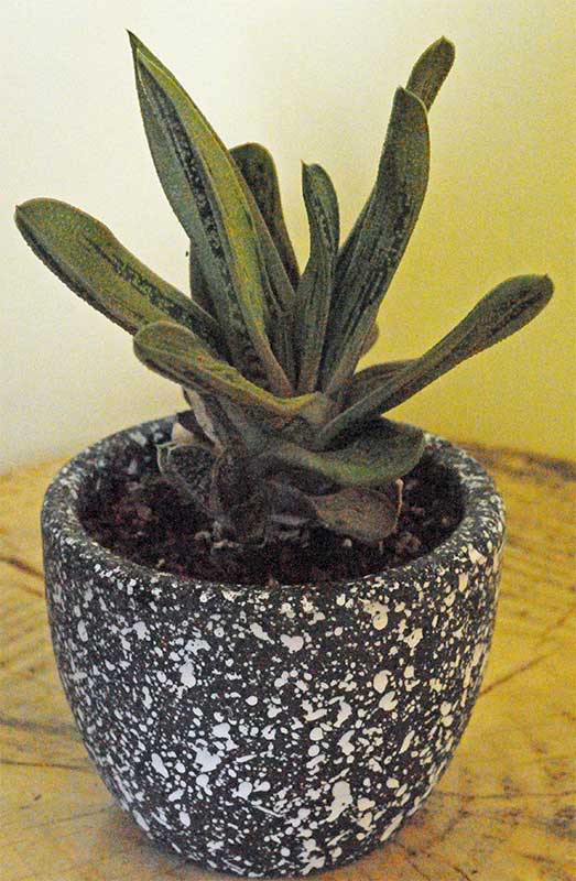 | Gasteria 'Little Warty' is a shallow-rooted hybrid from South Africa; it's susceptible to fungal infections so bottom watering is important. |