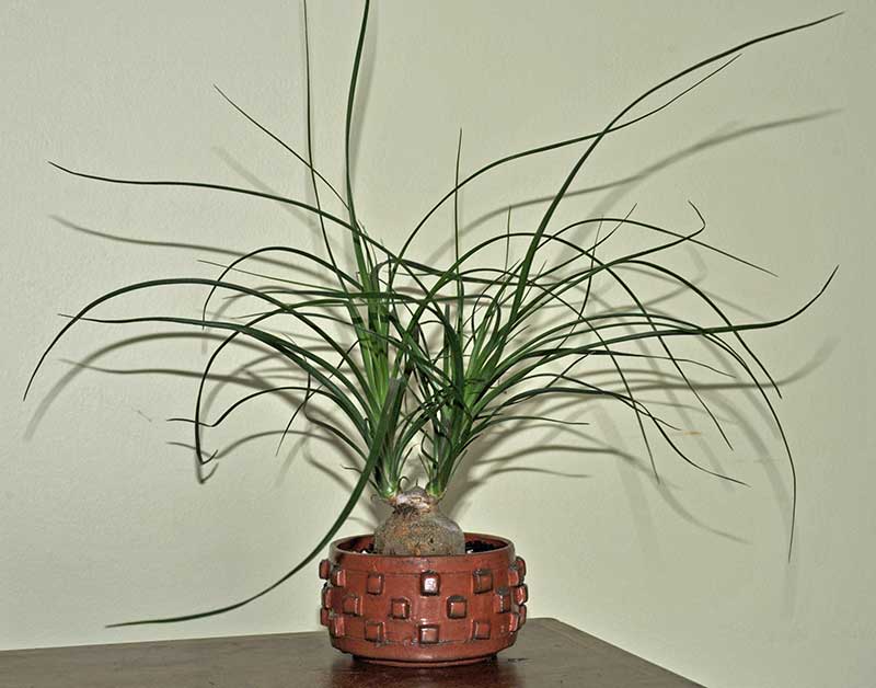 | Beaucarnea recurvata is native to eastern Mexico. It's slow growing but can reach 4 m with time and good light. |